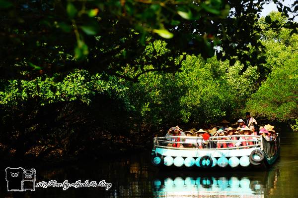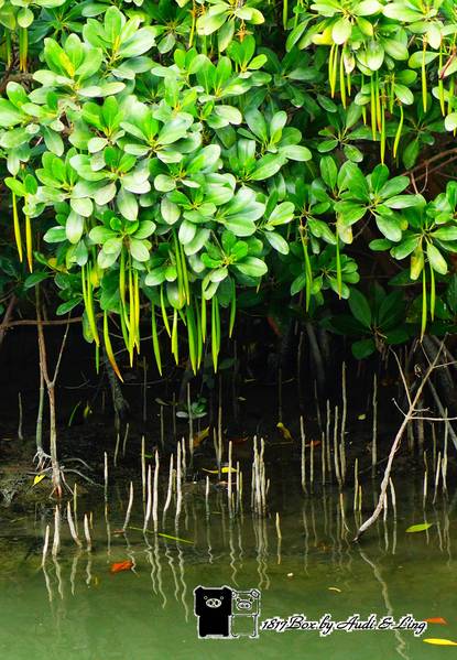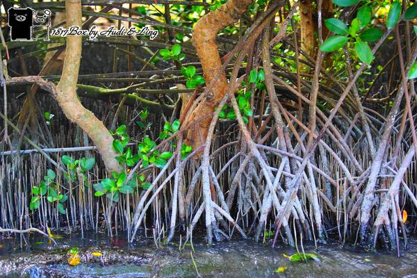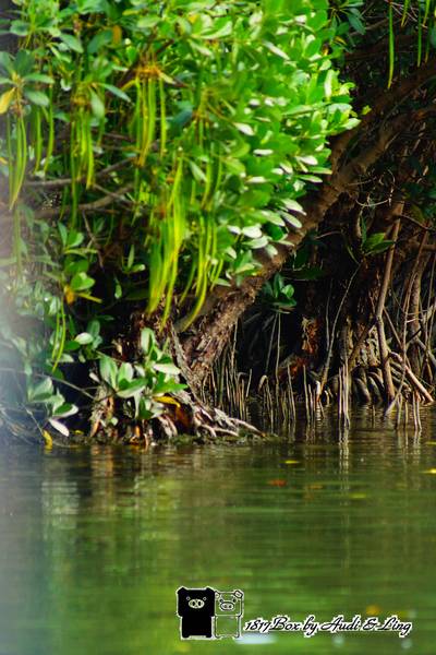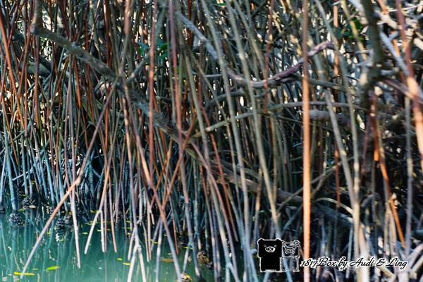 經過最美最茂密的紅樹林區時,由於樹枝貼近水面,有很多樹枝會用繩子綁住,幾乎伸手就能碰到,