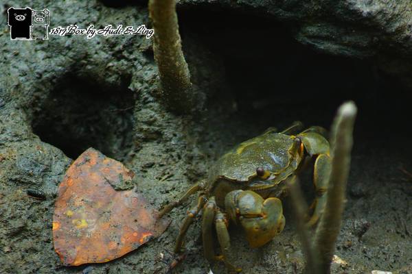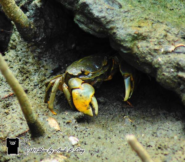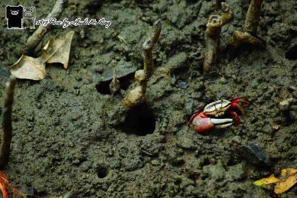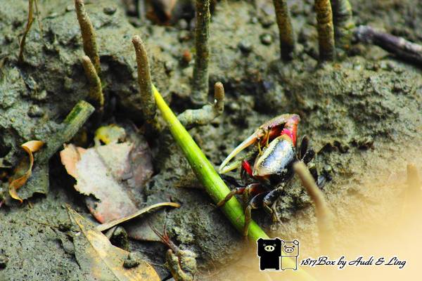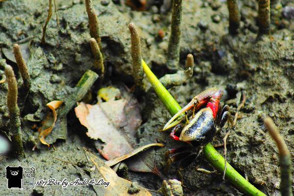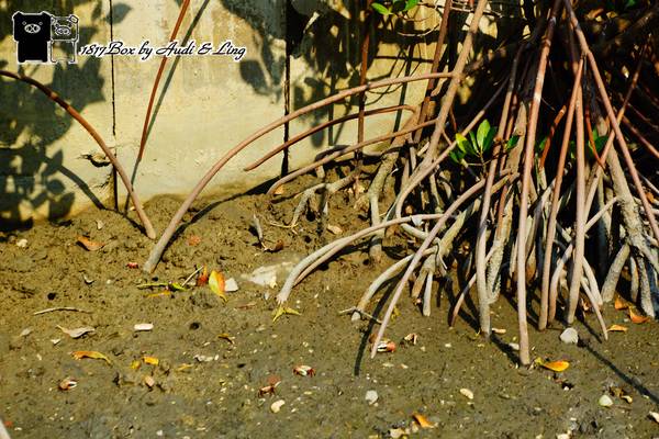 紅樹林保護區的魚塭的紅樹林 潮溝可以看見招潮蟹有六種,