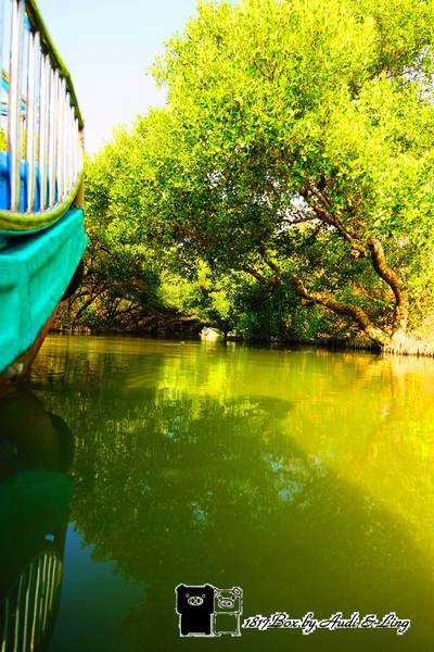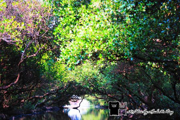 四草生態綠色隧道是由紅樹林自然形成的,沿著河道緩緩前進,