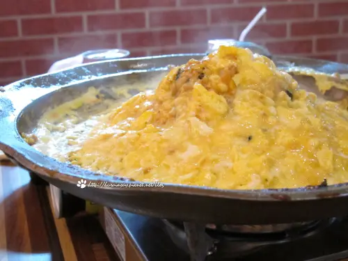 不知道是我們烤太久呢?還是起司太薄亦或者盤子太淺?起司沒有想像中的濃稠~
