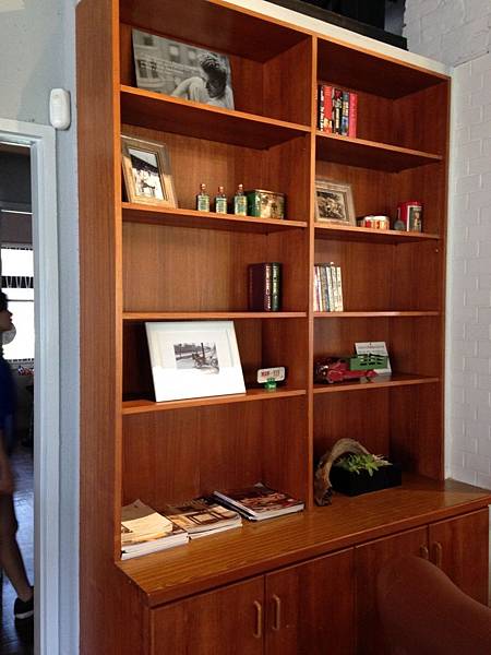 兩旁的木櫃保存得非常完整,幾乎沒有被破壞過,連木頭原色都保持得非常完好,因此我們將它保留,放一些代表50年代的小飾品,讓50年代的氛圍延續下去。木櫃的功用不因時間的推移而被捨棄,反而因為它的年紀而更有歲月的痕跡。 - 亞尼克臉書