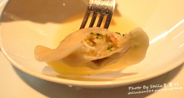創意餃子吧 和中國餃子很像,包著帝王蟹肉滋味迷人 餃子內口感香甜而不膩
