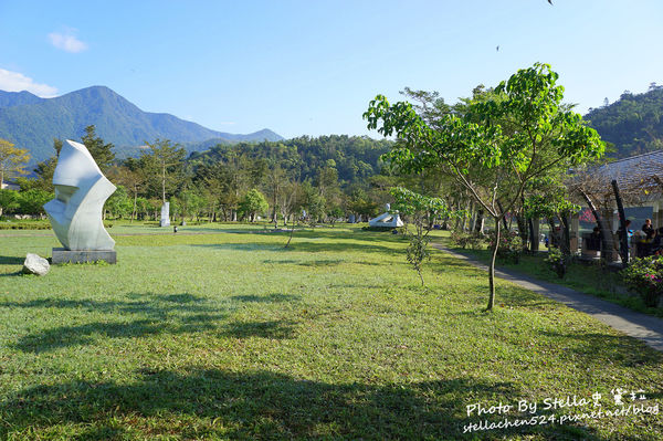 客中心前的大草皮,豎立著許多的石雕藝術品