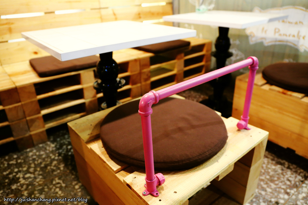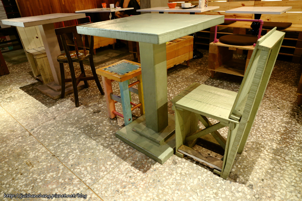 店內的裝潢帶點原木美式風格,簡單卻溫馨;桌子是用白色小方塊磁磚拼貼而成,整個看起來舒適,讓人感覺很放鬆
