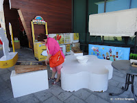 ▲ 入口旁有放置以前考香腸攤常用的遊戲,像骰子、彈珠台等遊戲,而且還可以玩喔。