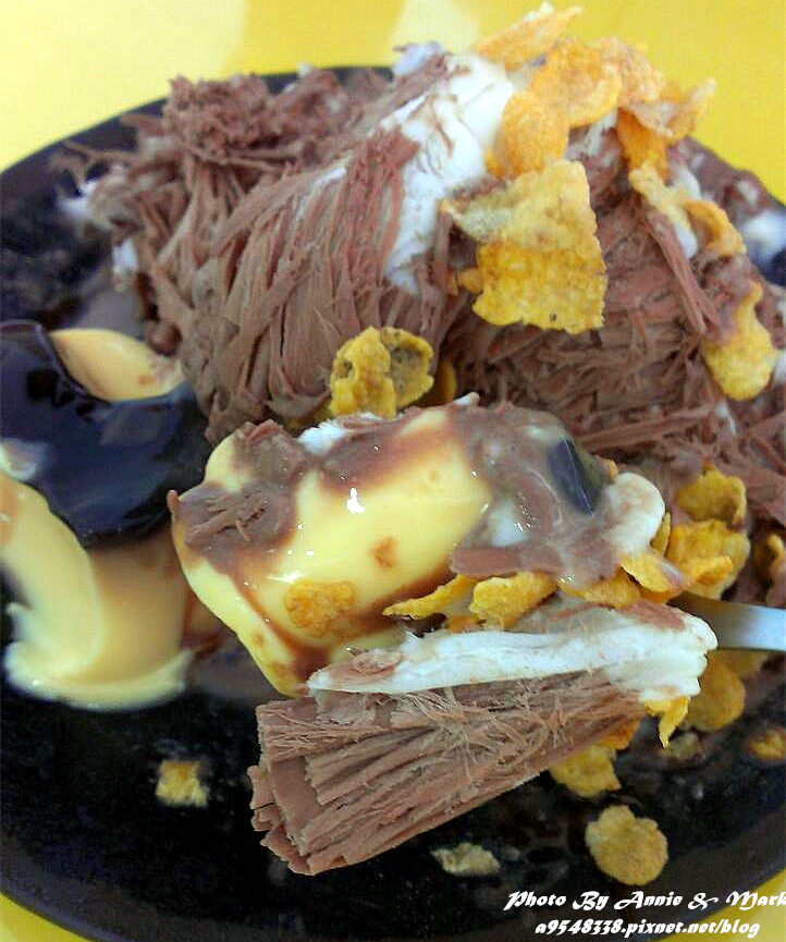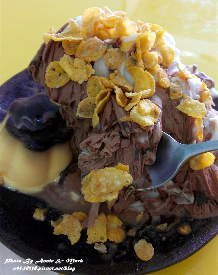 香蕉巧克力玉米片雪花,加了布丁,共80元,感覺價位不低!