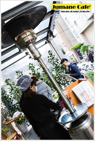| | 其實就算天氣稍微有點涼坐在外頭也不用害怕著涼… 因為這支超大型的火爐足以讓人感覺到夏天來臨XDD… 怕冷的我坐在它旁邊外套都一件一件的脫下來了… 身體一暖肚子馬上就餓起來了這時候就準備要來點餐囉… |