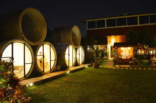 太陽快下山了,加上亮亮的水管屋真的很美!