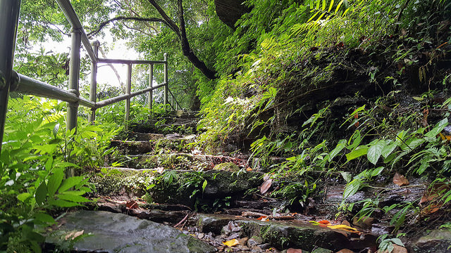 因為周圍都是茂密的樹林,步道比較潮溼所以並不是太好走,需要小心慢步的前行!!