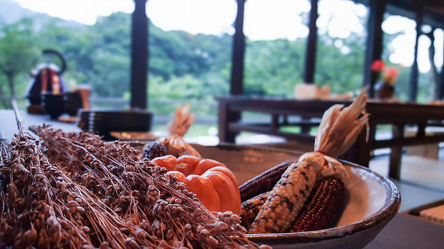 這裡的風格是類似禪園,中國風與日式風格的氛圍布置,