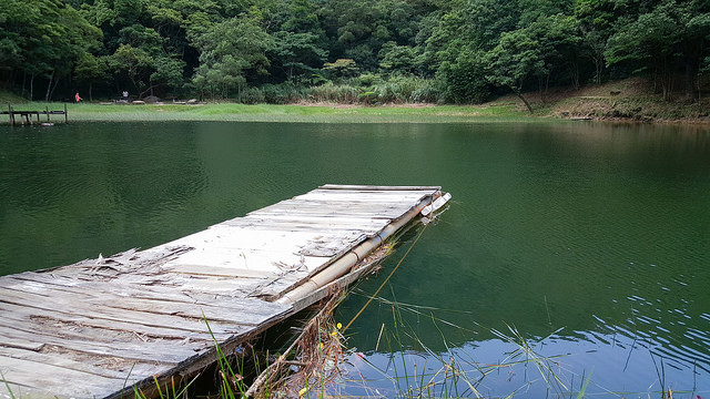 湖旁的木棧道斑駁破損,走到這裡要小心喔!不要踩空掉下去了!