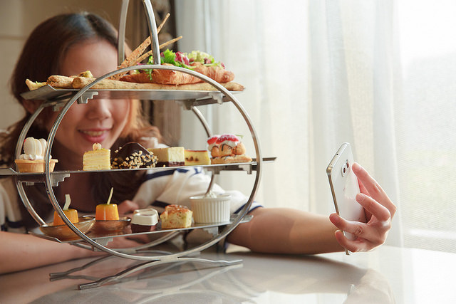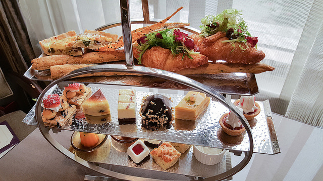 從最底層開始吃起,最下層也是最後吃的是司康搭配上cream,雖然順序不同,