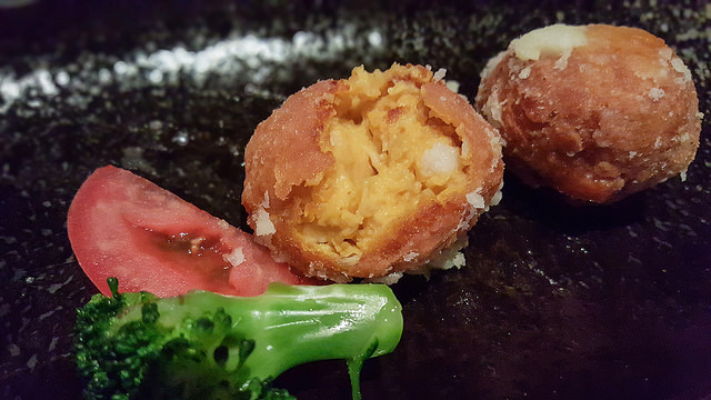 【素食:南瓜胡麻球,好吃!!!南瓜泥裡面好像加入了荸薺,所以吃起來很有口感】