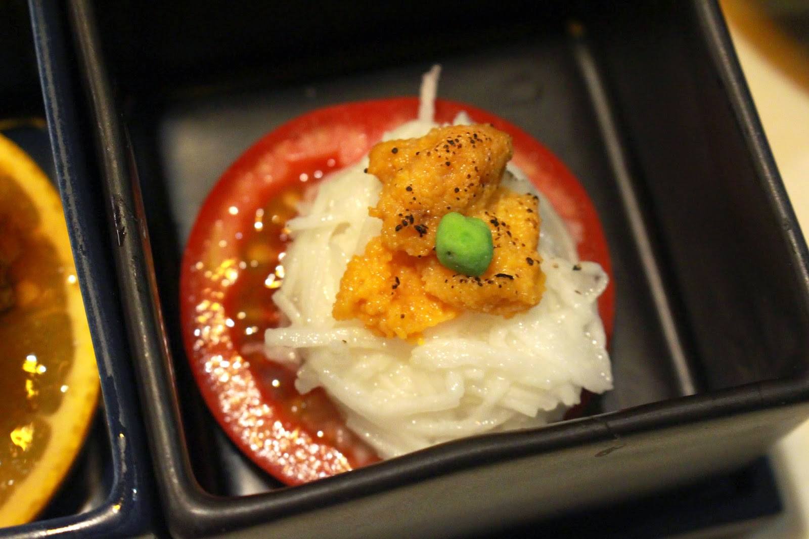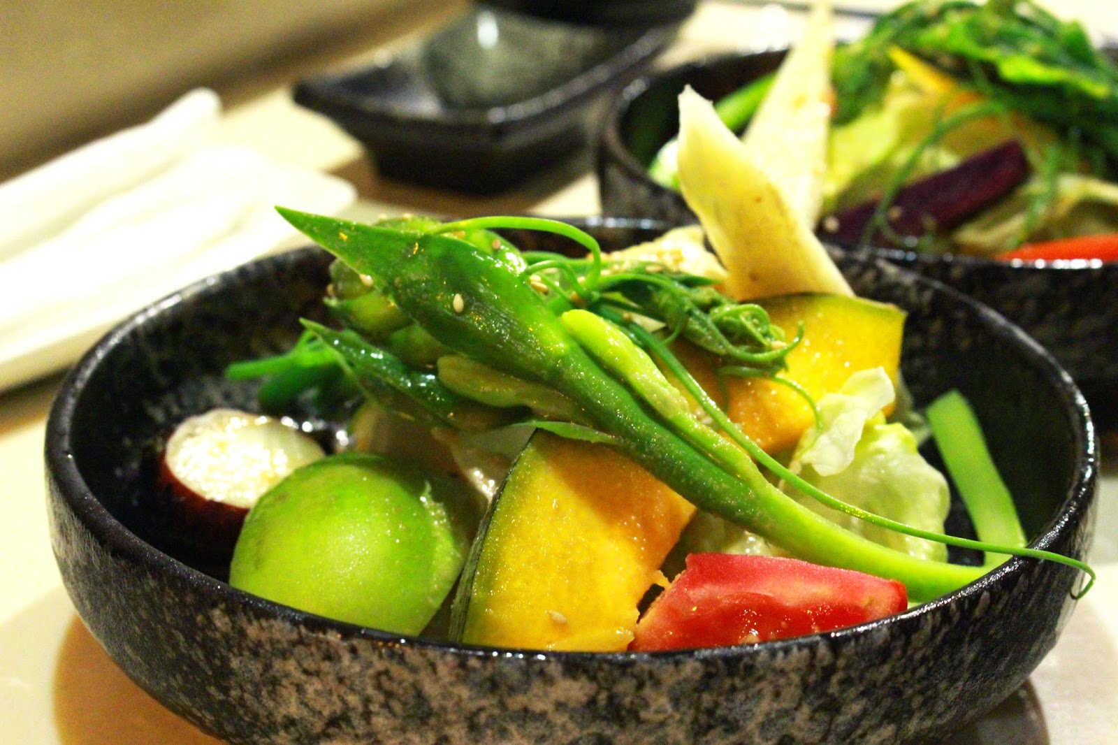 日式和風沙拉絞白筍.紫芋頭.棗子.番茄等等滿滿一盤的新鮮沙拉[生魚片握壽司(七貫)]nigiri sushi