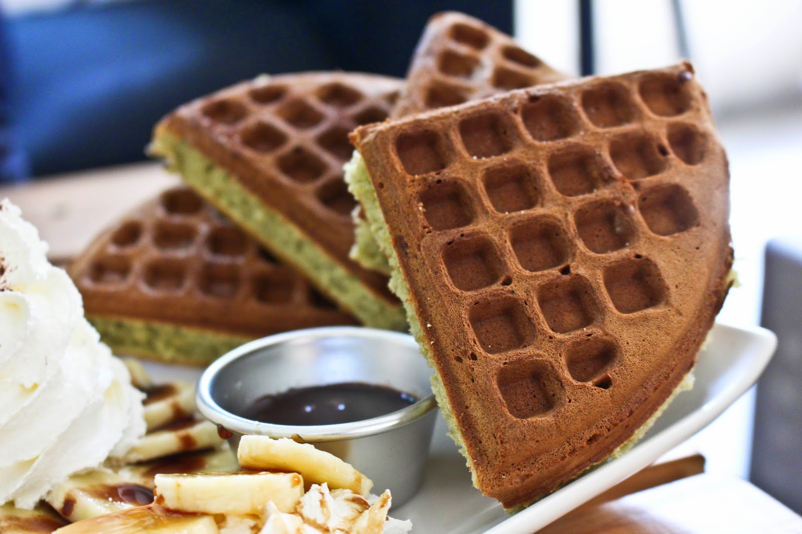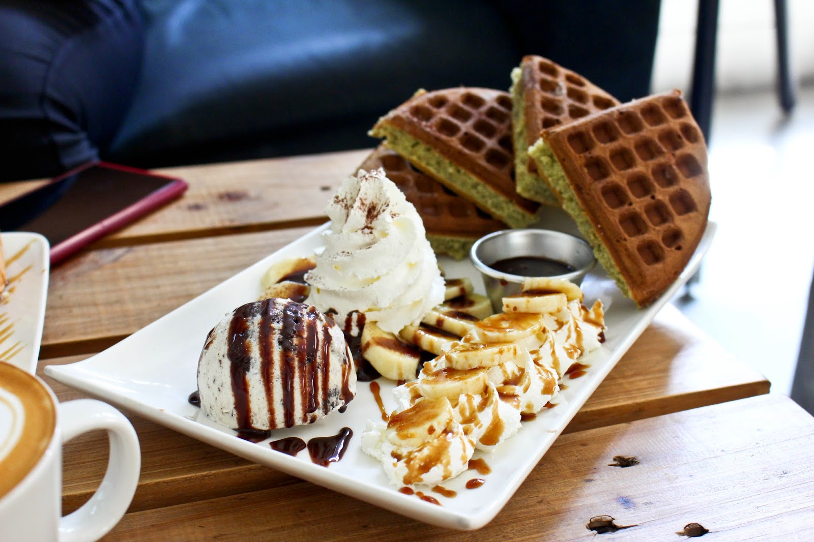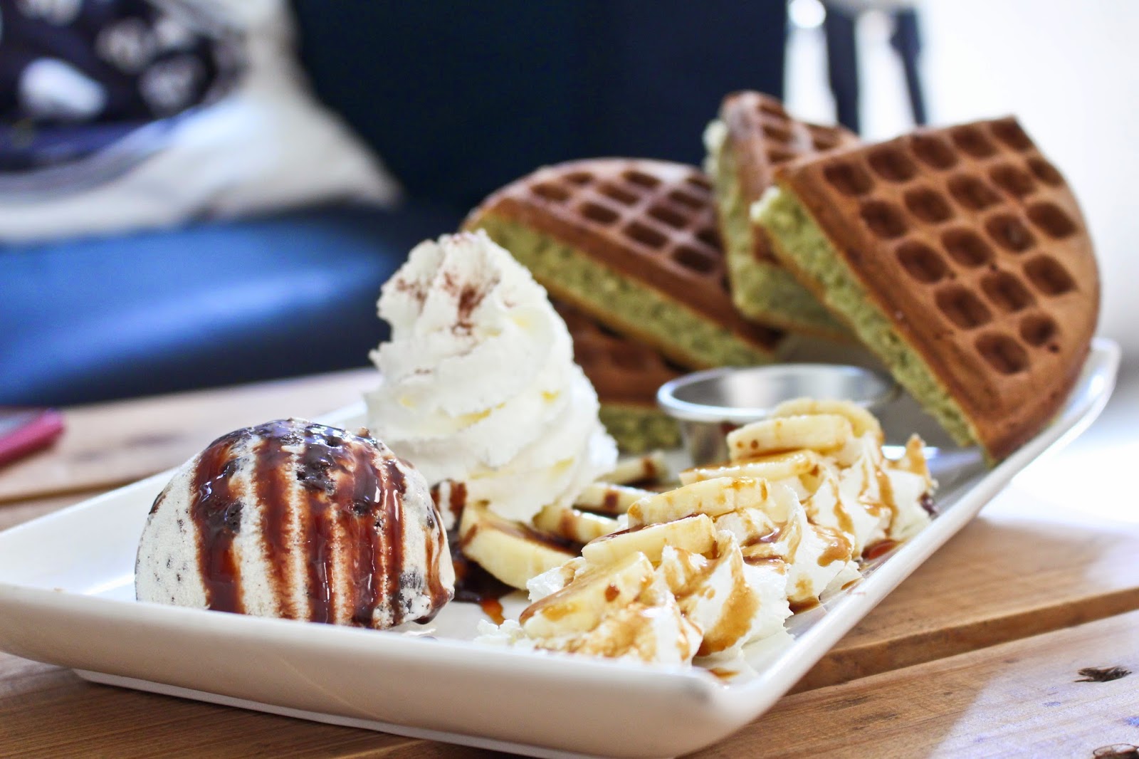 烤的酥酥的吐司擠上滿滿的鮮奶油淋上焦糖插上佈達咖啡的旗子