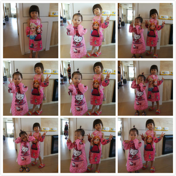 不過孩子不願意自己睡也無所謂啦,她們倆倒是很認真爬上爬下玩扮家家酒,不亦樂乎,我跟爸爸好輕鬆