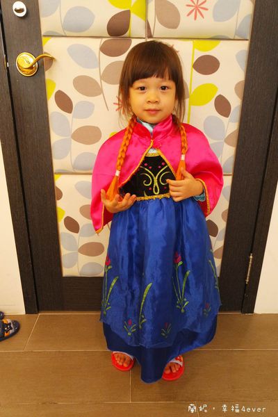 第一天就借穿了公主服來過過癮,意外發現選了兩件超適合她們的服裝,心妞的顯然比較大件,戴上蝴蝶結髮窟超可愛