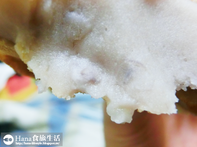 ▲厚實的芋頭餡料綿密而帶有顆粒,從前面咬一口,