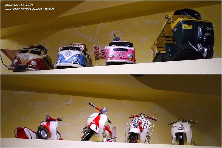 眾多擺設中最吸睛的就是各式汽機車模型 童趣的復古味很可愛 喜歡的話也能買回家