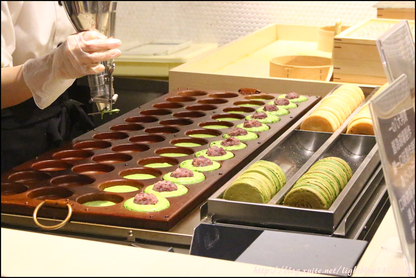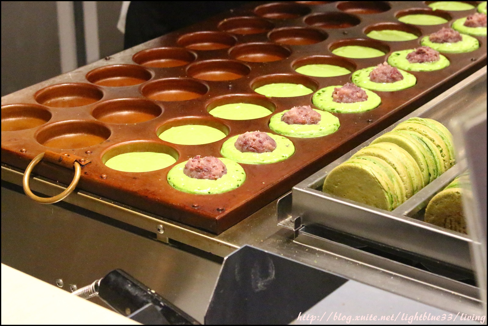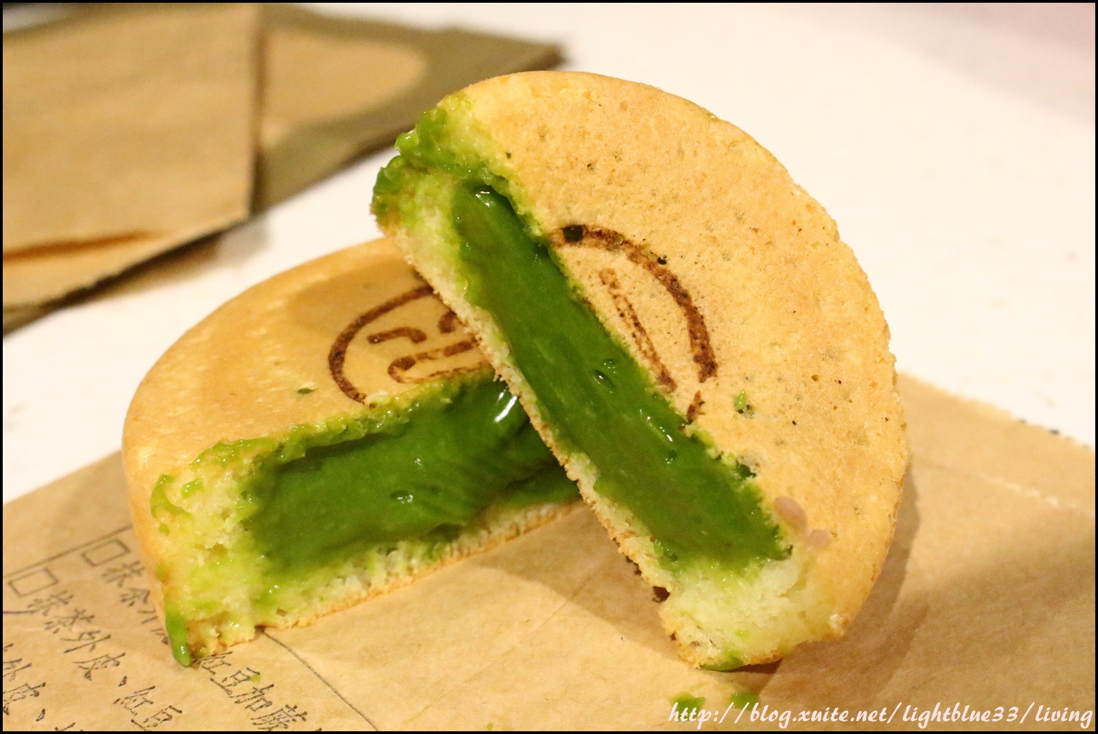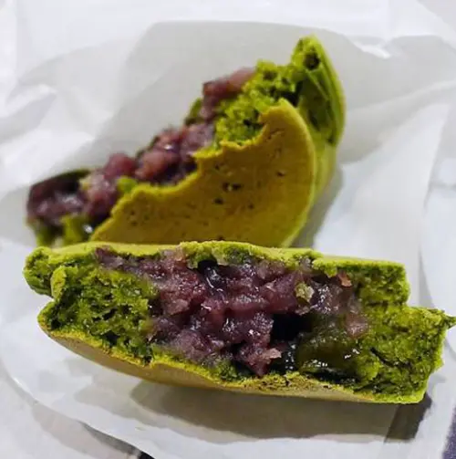 這是抹茶外皮、紅豆內餡,剛剛已經說過大判燒的不同口感,