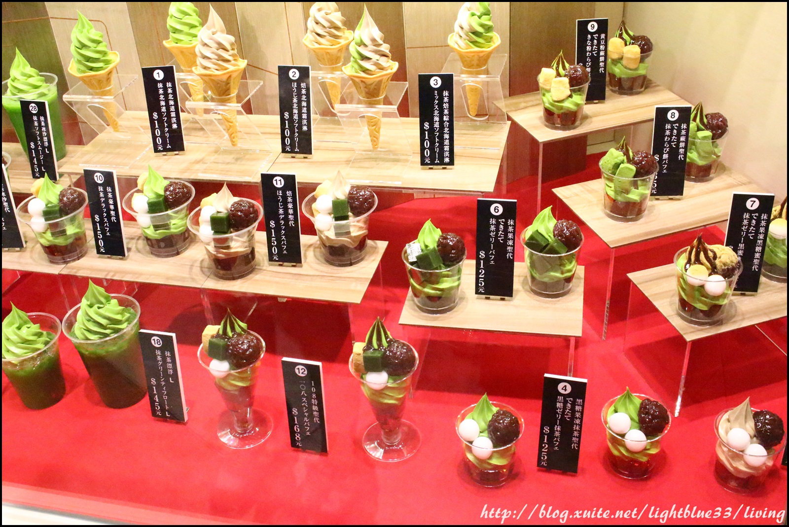 因為跟朋友兩個人都很熱愛抹茶甜點,所以我們沒有猶豫太久就決定每種都來一個!XD