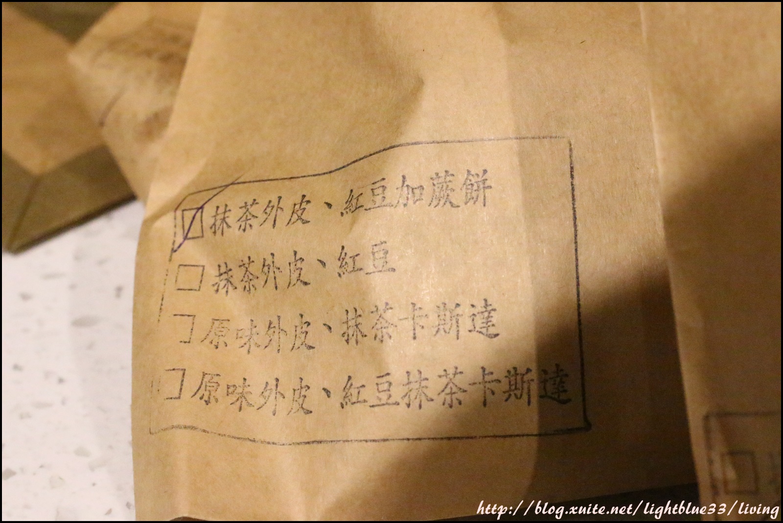 這是原味外皮、抹茶卡式達加紅豆,