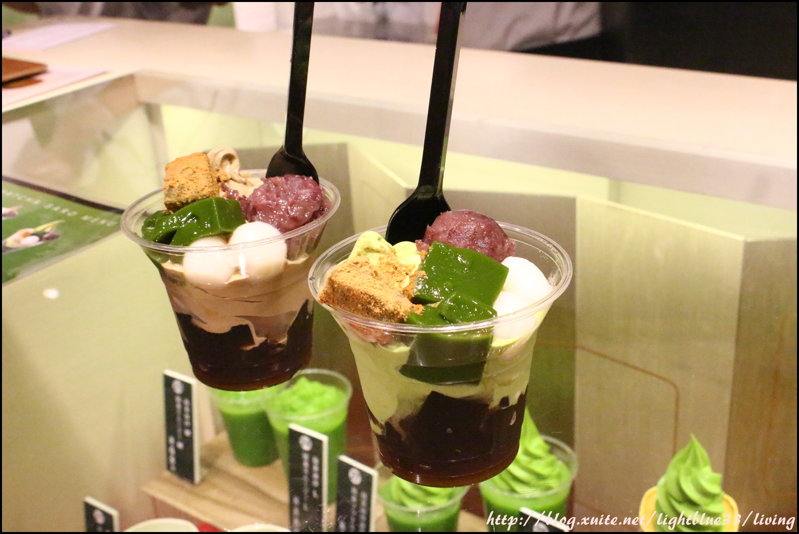 我們點了一個抹茶豪華聖代、一個焙茶豪華聖代,