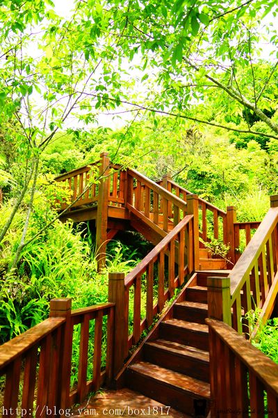 沐心泉農場裡有木造樓梯,沿著山的地形往上爬,