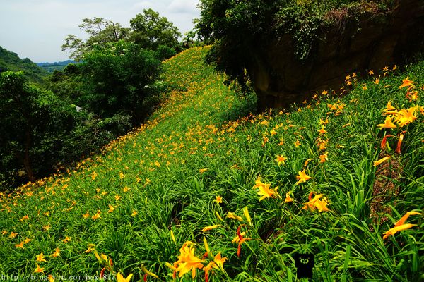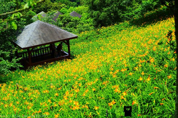 翠綠的山谷裡,盛開著黃澄澄的金針花,