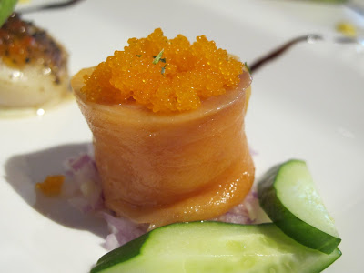 | 前菜~鮑魚、干貝、煙燻鮭魚 |
