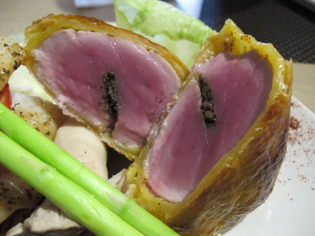 | 明蝦、扁頭魚、威靈頓小牛排 |