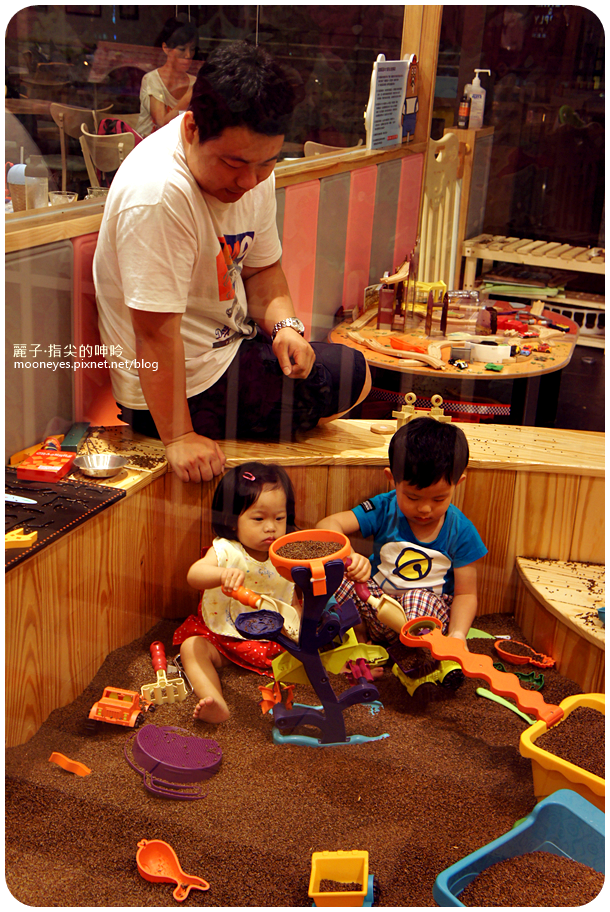 裡面有耗資兩萬元打造的決明子沙池,還有很多玩具、廚具台家家酒,