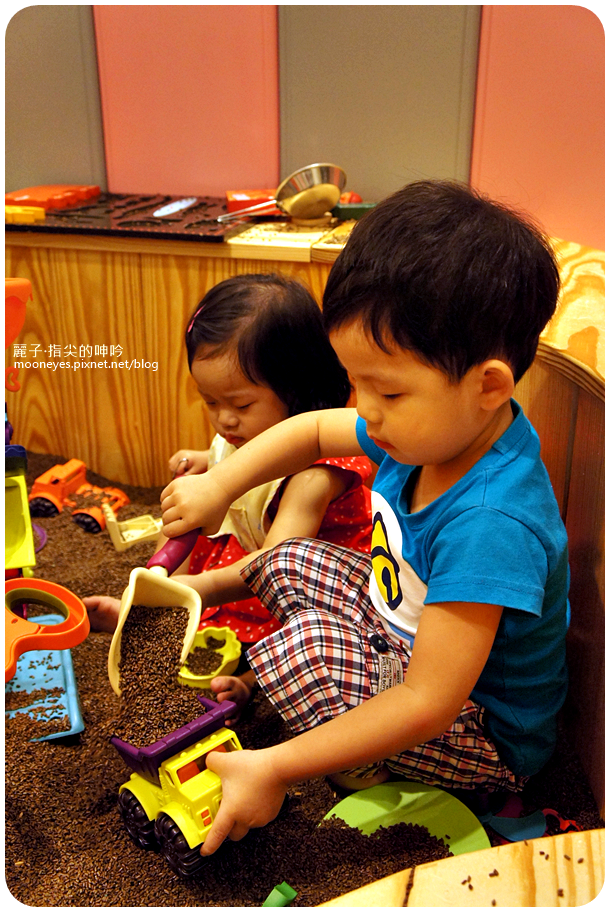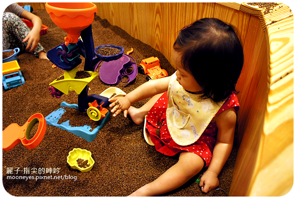 美人瑜妹妹也不亦樂乎,兩個第一次接觸決明子沙的孩子都好開心唷,