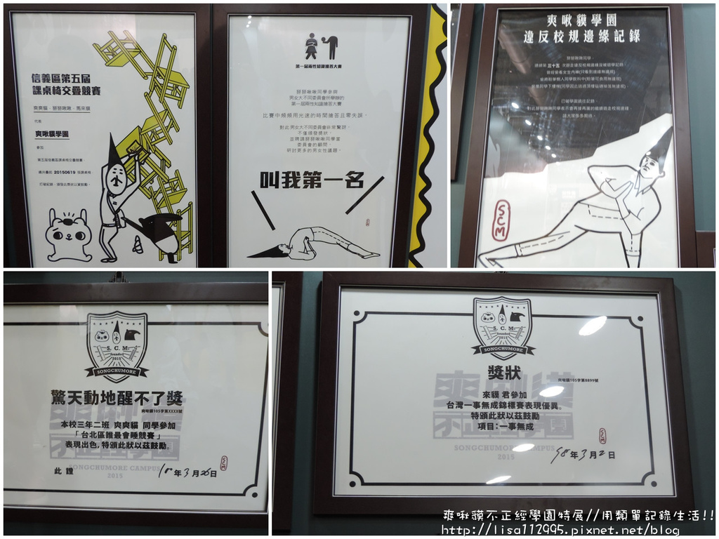 整個展覽以校園生活為主題,在校園各處加入三位插畫家的不正經精神