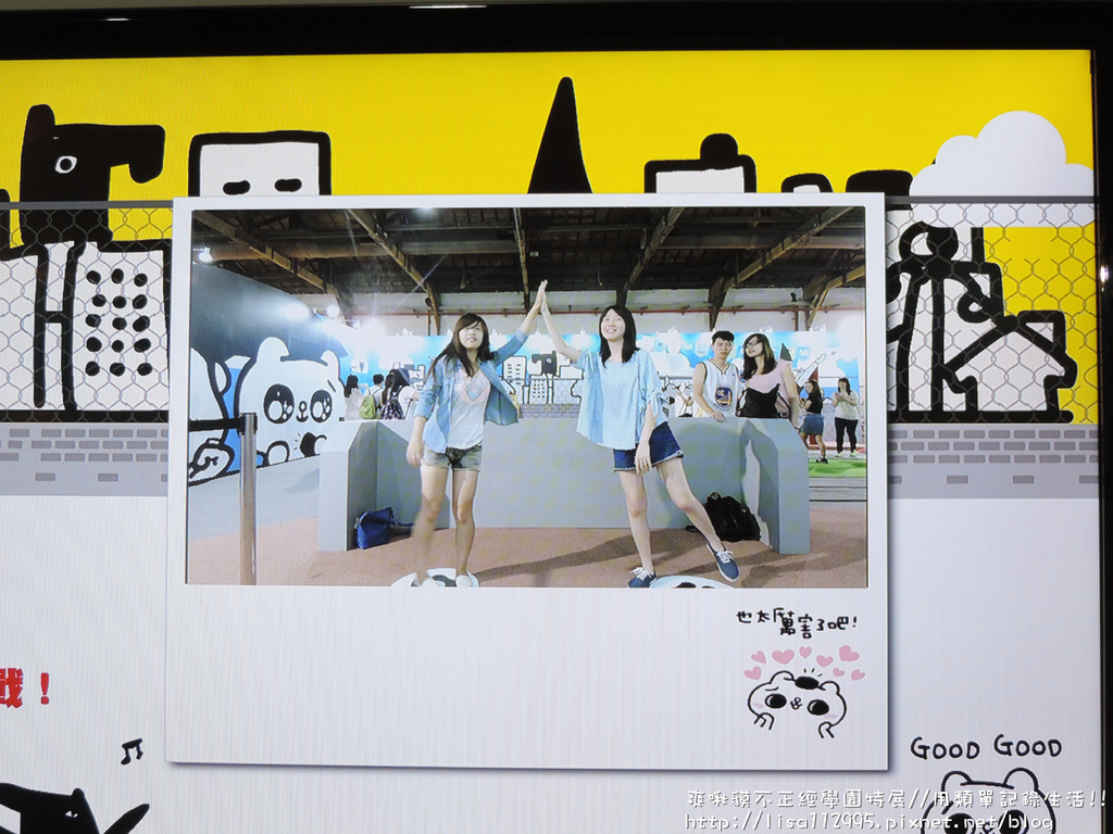 才剛進到松山文創園區就看到爽啾貘三人的方向指引牌,三個人疊羅漢的樣子真的好可愛