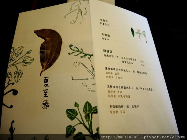 可以感受到這菜單精心設計的程度,特地印有當天的活動日期6/22號,而且上面貼的那葉子是真的葉子呢!