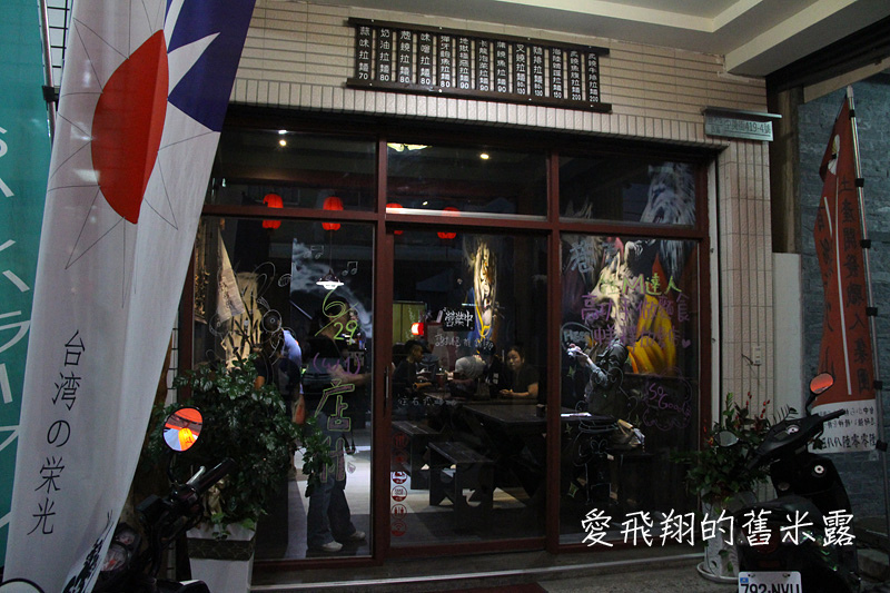 還沒進去,從門口看進去,風格特異,黑旋風時尚格調的手繪風格,潮味十足,兼具日本與台灣的綜合體,還帶點年輕Q版的手寫風,