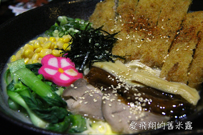 還真是大份量,日式豬排幾乎滿滿是,麵衣酥脆,肉質軟嫩帶有酒香味,撒上七味粉調味,