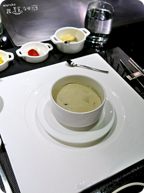 主餐的調味鹽佐上的是電研磨的夏威夷火山鹽和玫瑰鹽兩種,電研磨的時候還會發出藍光,還蠻酷的。