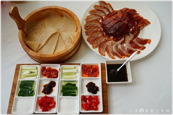 搭配了荷葉餅,特調甜麵醬,與六款配料!