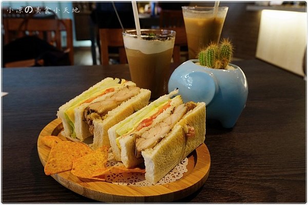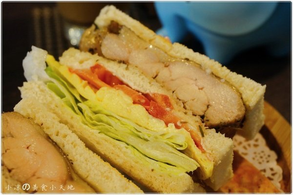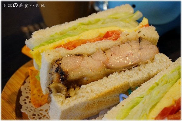 這道輕食很爽口,烤好的土司夾著鮮脆的生菜,軟嫩的蛋皮與大塊的雞腿肉