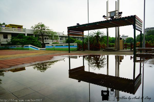村東國小圖書館倒映在水中的畫面,美的像一幅畫,