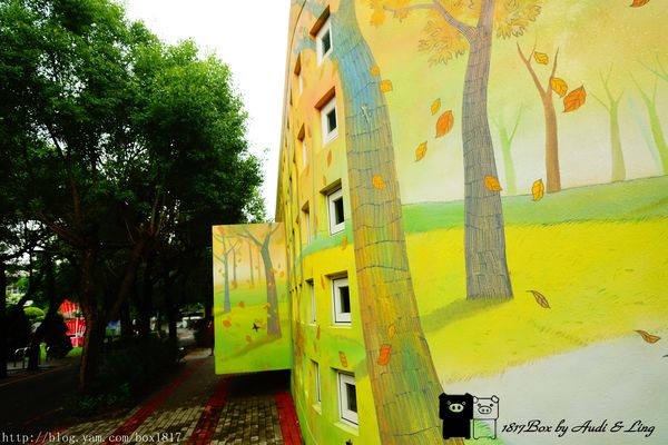 圖書館外觀的彩繪以黃色為基本,溫暖的大地色調,