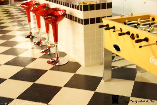 有一間50年代的餐廳,點唱機、霓虹燈、老式冰箱和可口可樂餐具樣樣俱全;