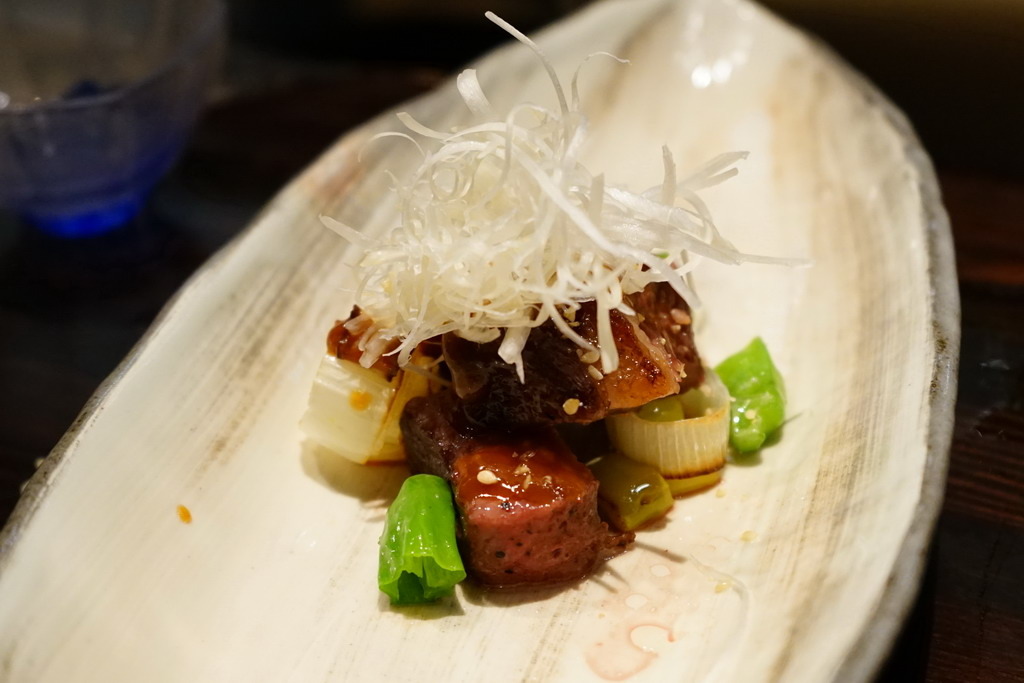 煎牛肉,關東蔥再加上一點味噌,這裡使用的是美國牛,甜度與肉質是沒有問題。