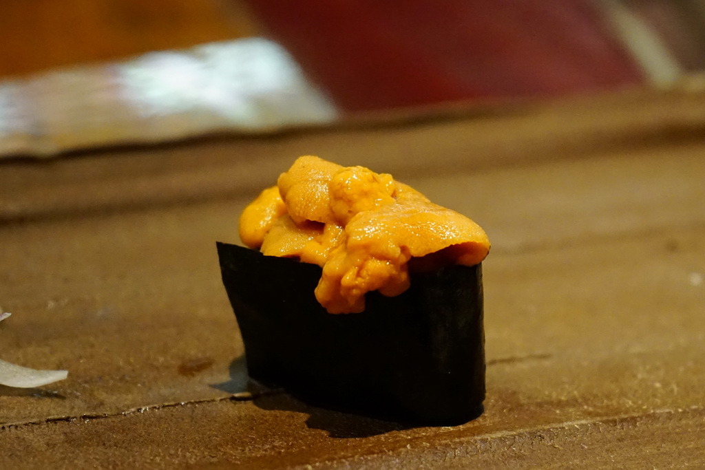 有了這段介紹想必大家就知道口感,就是咕溜咕溜,調以些橙醋,有點酸酸,再與海膽入口,舌尖可以感覺出海膽的鮮美。