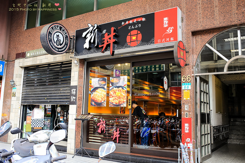 ▲▲▲新丼的店面門口,位於大樓騎樓的一樓,台北當代藝術館的斜對面