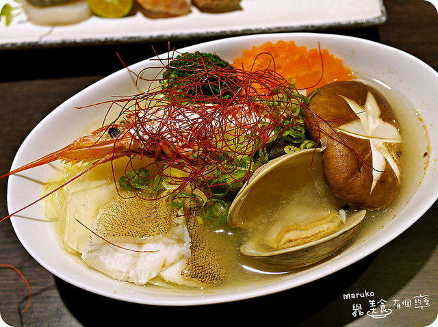 這個蒸物的料會不會太豐富,除了一大顆蛤蠣還有石斑魚肉、大蝦、時蔬,高湯帶有一點酒味,