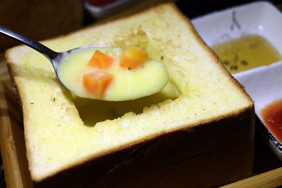 旁邊的吐司磚還可以撕下來配湯