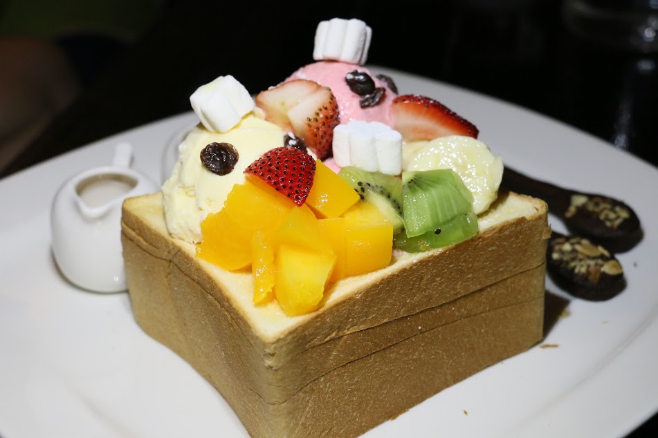 旁邊附有三種醬(草莓醬、煉乳、蜂蜜)